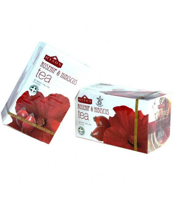 Hibiscus Tea from Hyson - The Rosehip is the pomaceous fruit of the rose plant. The delicious taste, aroma, and fine health benefits make Hyson Rosehip and Hibiscus a great, healthy lifestyle tasting natural beverage for all. It has many benefits, such as skin benefits and help in weight loss.